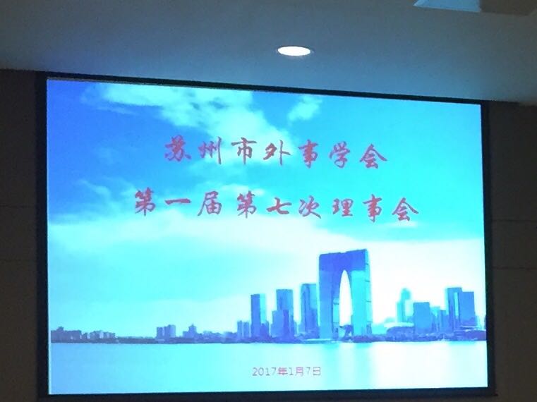 2017年1月7日(星期六)上午,蘇州市外事學(xué)會第一屆第七次理事會在工業(yè)園區(qū)現(xiàn)代大廈召開。會議由李峰副會長主持。工業(yè)園區(qū)外事辦公室主任鄒小偉致歡迎詞。 鄒主任簡單介紹了園區(qū)外事工作情況,表示園區(qū)外辦希望在今后的外事工作和園區(qū)的經(jīng)濟(jì)發(fā)展中加強(qiáng)和外事學(xué)會的合作。潘小江副會長介紹了擬聘請外事學(xué)會顧問的園區(qū)管委會公工委委員, 園區(qū)黨工委管委會辦公室主任丁立新和園區(qū)外事辦主任鄒小偉的情況; 介紹了擬擔(dān)任學(xué)會理事常熟市外辦副主任戴亞芳的情況;介紹了擬加入學(xué)會成為會員單位的市立醫(yī)院北區(qū)和立德節(jié)能建筑集團(tuán)股份有限公司的情況;就錢俊澤不再擔(dān)任學(xué)會理事作了說明(系執(zhí)行市委組織部關(guān)于退離休干部在社會團(tuán)體兼職年齡限制的規(guī)定)。潘小江副會長還就學(xué)會章程部分內(nèi)容更改作了說明。李峰副會長主持就上述事項進(jìn)行表決。會議一致通過本次會議提出的人事變動,發(fā)展會員,章程更改等提議。湯榮龍副會長報告2016年度學(xué)會財務(wù)情況。